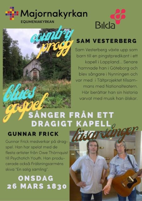 Sånger från ett dragigt kapell. Sam Vesterberg och Gunnar Frick. Contry Blues Läsarsånger Gospel Progg, samt berättelser från Sams uppväxt. En samling i serierna Mötesplats Majorna och Musik i Majorna.